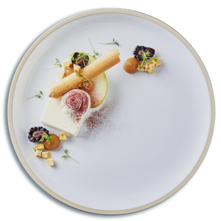 Salted caramel custard tart, vanilla ice-cream.